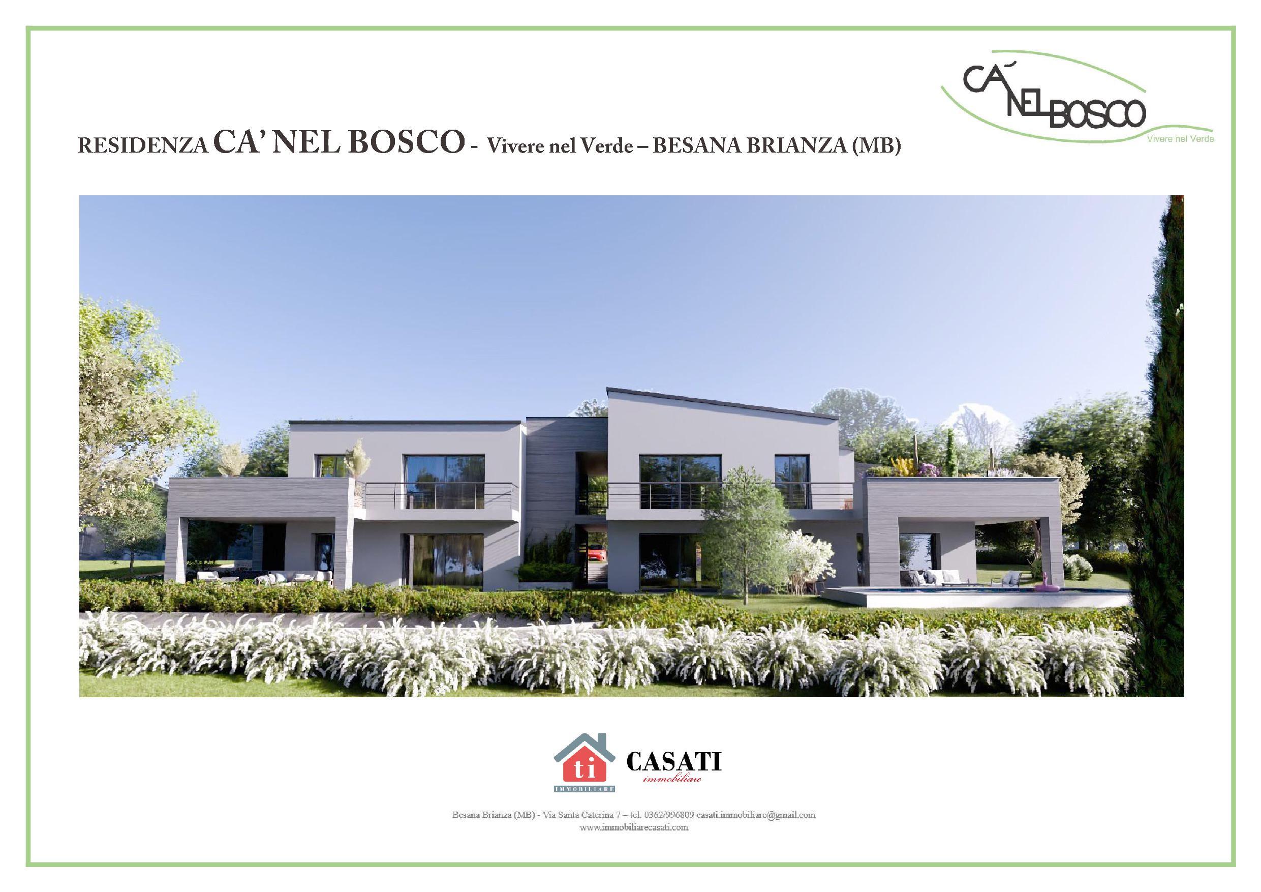 Residenza CA'NEL BOSCO Un’oasi nel verde di Calò – Vivi Besana in Brianza al meglio Nel cuore della suggestiva frazione di Calò, all’interno del Comune di Besana in Brianza, nascerà una nuova mini palazzina residenziale immersa nel verde. Un progetto pensato per chi desidera tranquillità senza rinunciare alla comodità. La residenza sarà composta da 5 unità abitative. ✨ Caratteristiche principali: Appartamenti di varie metrature 2-3-4 locali, con ampi terrazzi o giardini privati Finiture di alto livello e materiali ecosostenibili Possibilità di realizzazione piscine nei giardini e nei terrazzi Spazi luminosi e moderni, progettati per il massimo comfort Classe energetica elevata per un risparmio garantito 🌿 Posizione privilegiata: Circondata da paesaggi brianzoli, tra parchi, maneggi, sentieri e silenzio Una frazione storica e riservata, perfetta per famiglie e professionisti 📌 Ideale per: Chi sogna una casa nel verde ma non lontano da Monza, Milano e Lecco Investitori in cerca di soluzioni di qualità in una zona in crescita Questa nuova proposta abitativa rappresenta l’equilibrio perfetto tra natura, comfort e bellezza architettonica. Ogni appartamento sarà termoautonomo con pompa di calore per riscaldamento a pavimento e raffrescamento ad aria, ventilazione meccanica ed impianto fotovoltaico dedicato. Bassissime spese condominiali! Per altre informazioni vi invito a contattarci per fissare un appuntamento presso il nostro ufficio APPARTAMENTO 3 3 O 4 LOCALI posto al piano terra con ingresso indipendente, giardino privato, portico e taverna collegata al box doppio in larghezza.